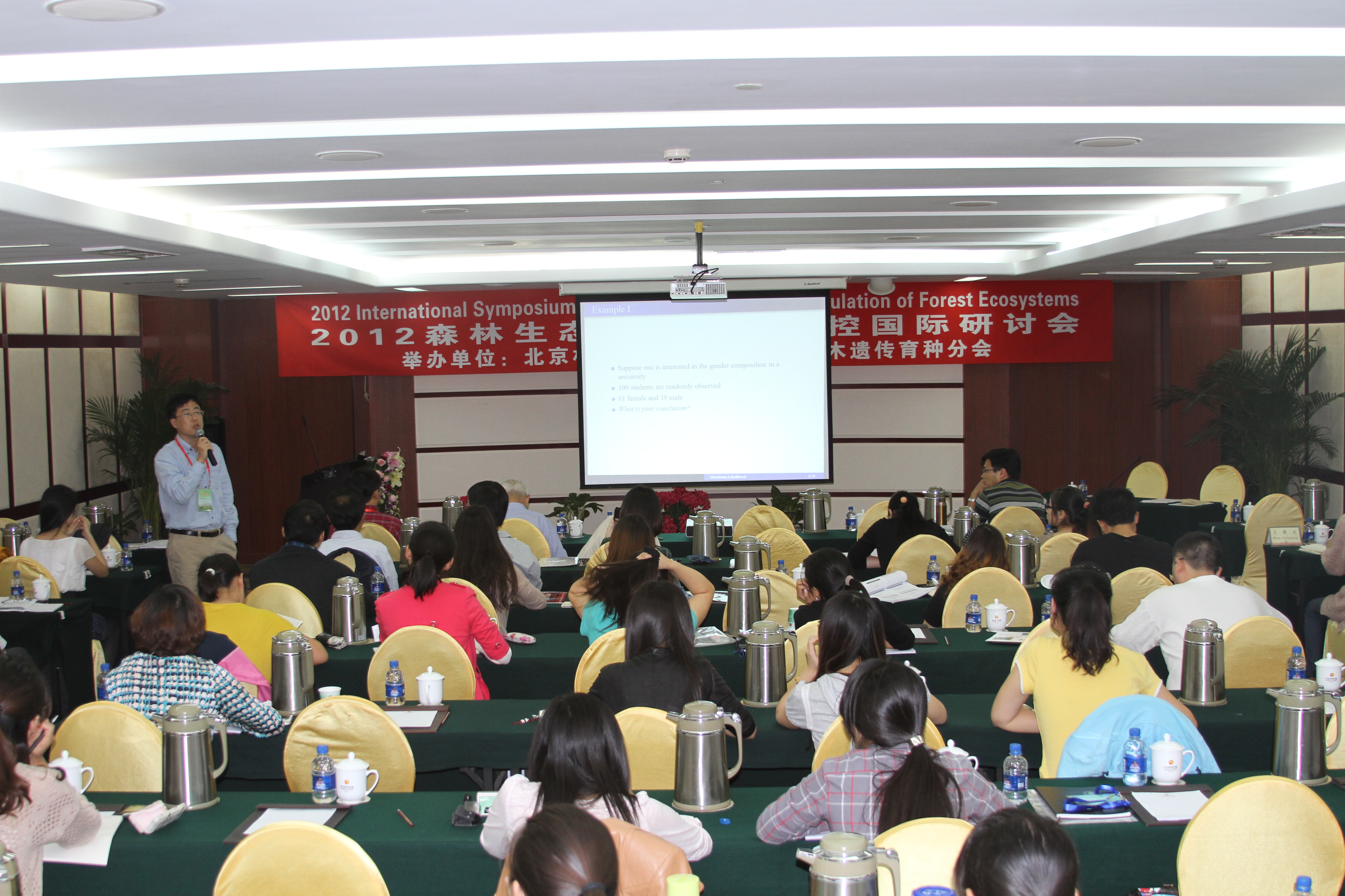 一个和谐而稳健的生态系统是人类赖以生存的基础。森林作为支撑全球生态系统的主体,其生态系统形成、演变的机制是生态学研究的主要内容。近年来,随着“组学”研究向各个领域的渗透,借助先进的遗传方法、强劲的统计模型来揭示自然群落内各物种之间相互依存、相互竞争的网络关系已经成为生态学研究的前沿领域。物种的竞争模式、生存空间,生态系统在变化环境中的结构、功能与动态方向均由基因调控。要全面理解基因在生态系统变化过程中所起的作用,对基因定位与生态模型分析两方面的工作进行整合必不可少。有鉴于此,我校和中国林学会林木遗传育种分会在10月8-12日,北京西郊宾馆成功地举办“森林生态系统基因调控国际研讨会”。会议由北京林业大学计算生物学中心、bet365娱乐场下载、林木花卉遗传育种教育部重点实验室及生物科学与技术学院承办,这也是我校第四次举办统计和计算遗传领域的国际研讨会。来自中国科学院、中国林科院、北京林业大学、东北林业大学、南京林业大学、首都师范大学等单位的专家学者及研究生代表100余人参加了研讨班。